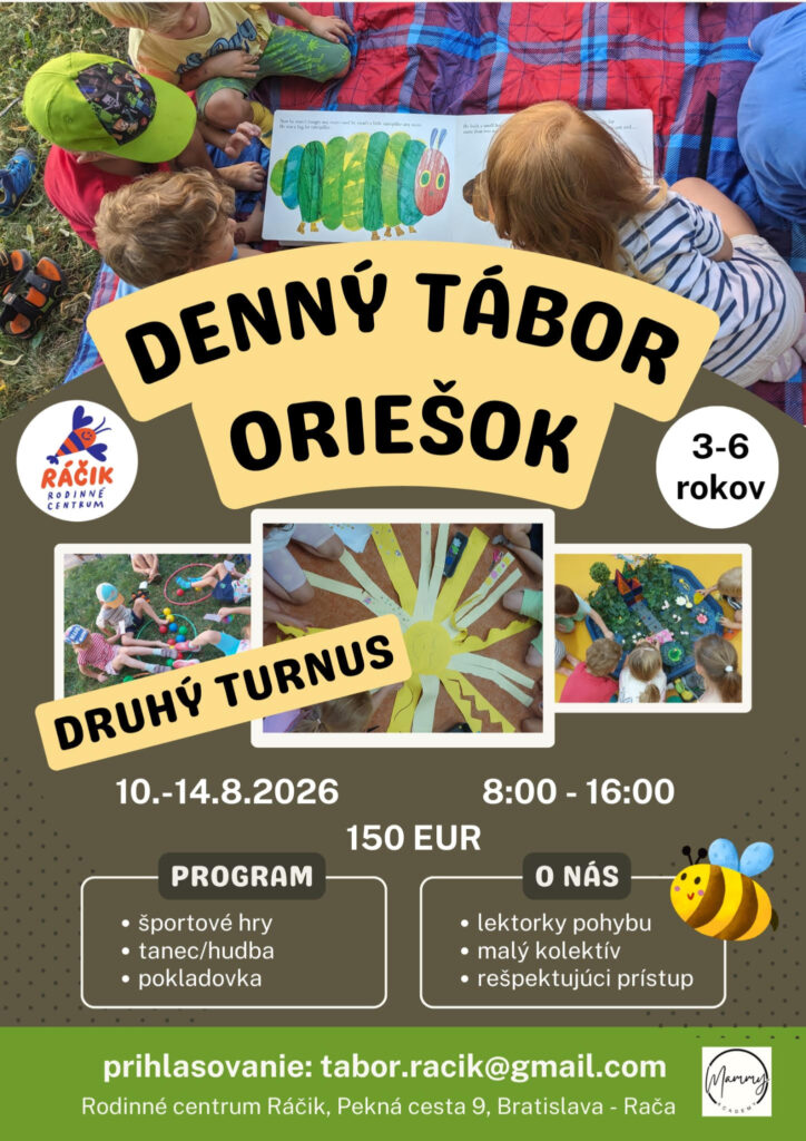 Milí rodičia, miesta na prvom turnuse nášho tábora Oriešok sa nám zaplnili rekordnou rýchlosťou ![]()
